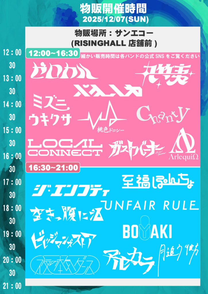 物販開催時間:2025/12/7(日)12:00〜16:30